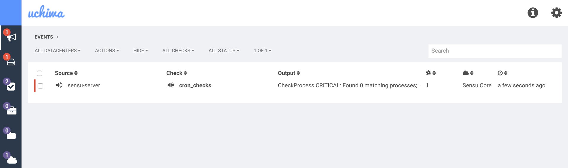 service sensu-server restart - Confirm that Sensu is working, the cron check you've created is OK, and there are no other alerts that have been triggered. Your Dashboard should look like this: