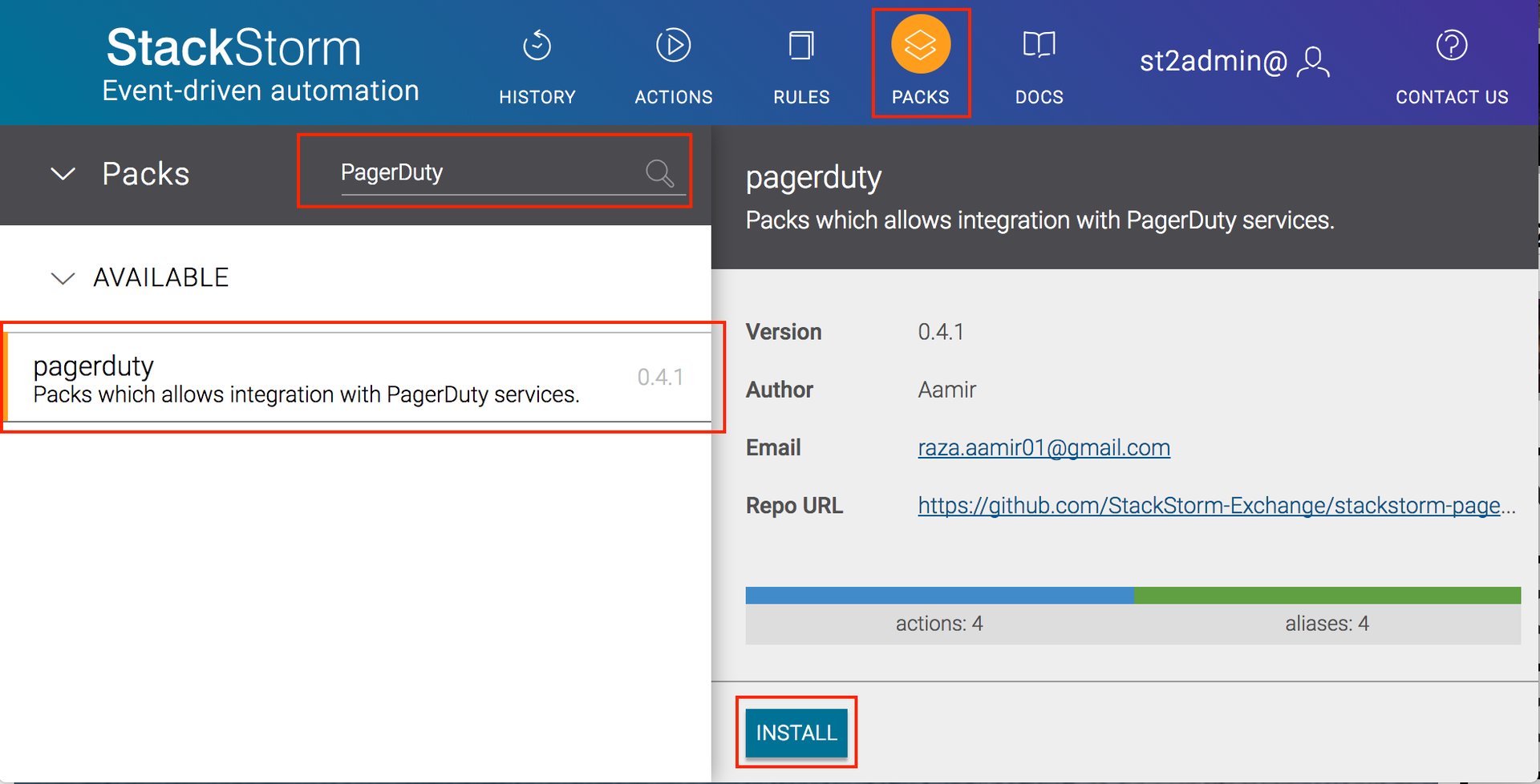 st2 pack install pagerduty. - Run