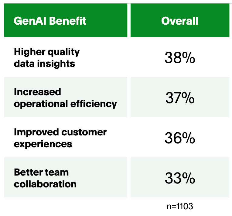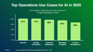 The PagerDuty 2025 State of Digital Operations report shows that organizations leveraging generative AI in their operations report significant benefits: 38% cite higher-quality data insights, 37% increased operational efficiency, 36% improved customer experiences, and 33% improved team collaboration.