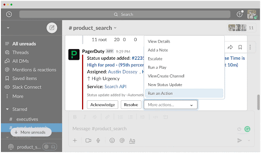 Automation Actions… everywhere: We’ve heard from our customers that they want to empower their first responders to diagnose and remediate common issues through automation. Last year, we introduced PagerDuty Automation Actions to securely invoke automation directly from PagerDuty. Now we’re making Automation Actions available through the PagerDuty mobile app, and within Slack. Responders can now resolve issues faster from wherever they respond, and it’s easier to collaborate with incident teams through shared results of this automation.