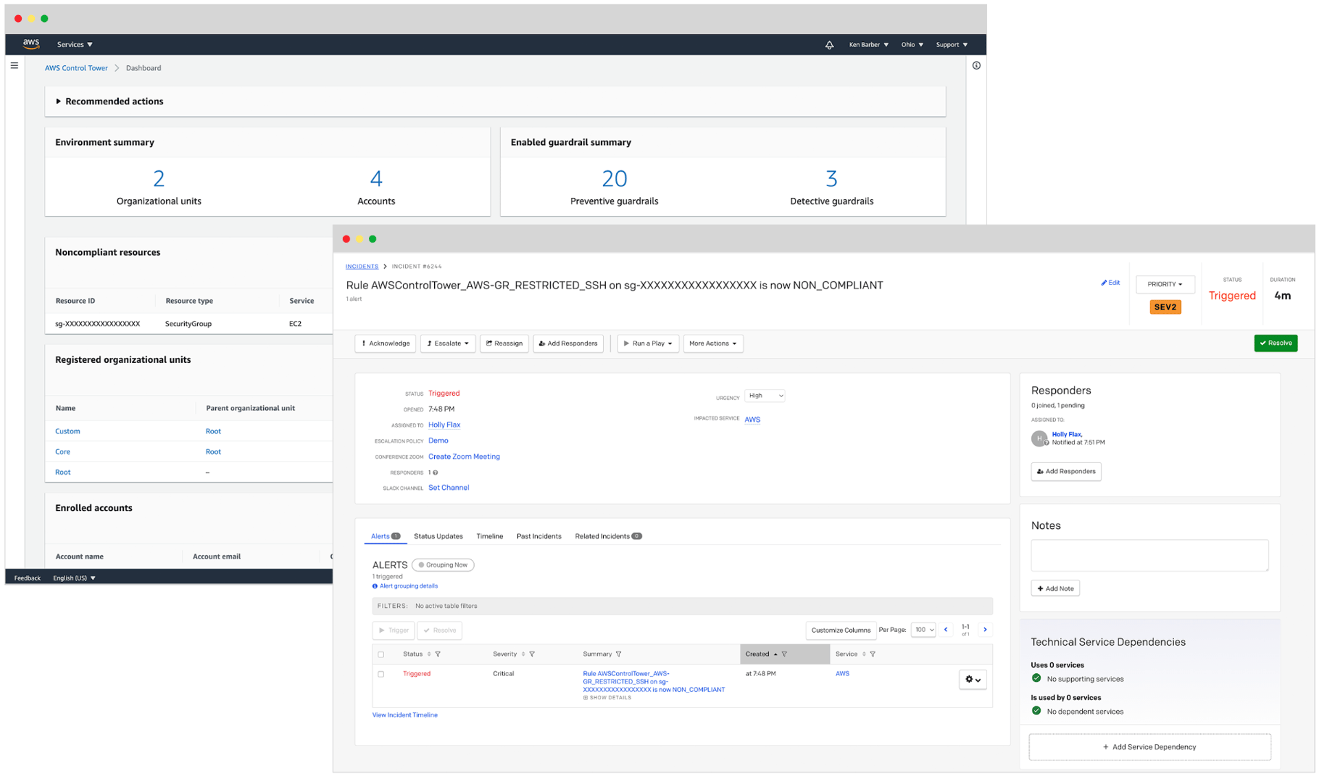 AWS Control Tower helps teams add guardrails to provide ongoing governance for their multi-account AWS environment—and that’s why we’re excited to announce PagerDuty for AWS Control Tower. When combined with PagerDuty, teams can extend Control Tower guardrail notifications to their existing incident management and compliance alerting process. The end result? A centralized incident management process that helps teams identify and mitigate business-impacting compliance issues, reduce risk and time to resolution, and keep systems running smoothly.