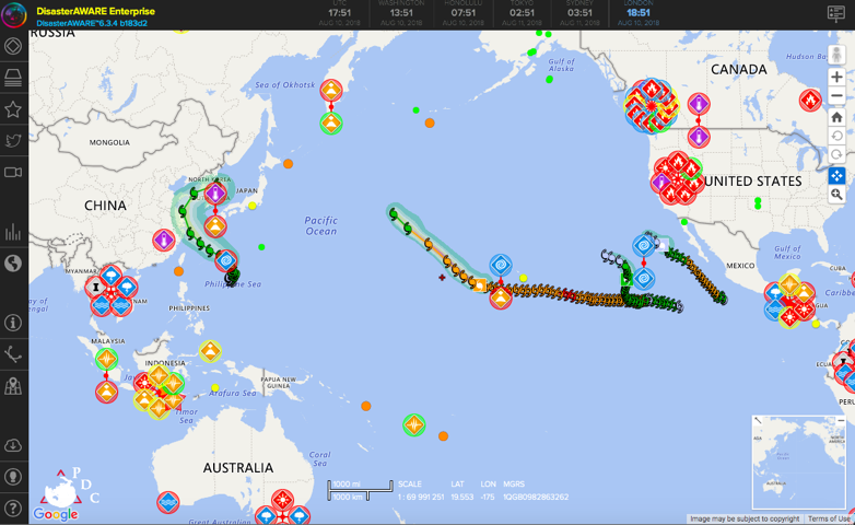 Recently, PagerDuty helped PDC during Hurricane Lane, a tropical cyclone that grew to a Category 4 hurricane at its peak intensity. In the days leading up to Lane’s projected landfall, the State Emergency Operations Center (EOC) was manned 24/7, and the data coming in from buoys and satellites was fed into DisasterAWARE to determine Lane’s predicted course and the potential damage to the area.
