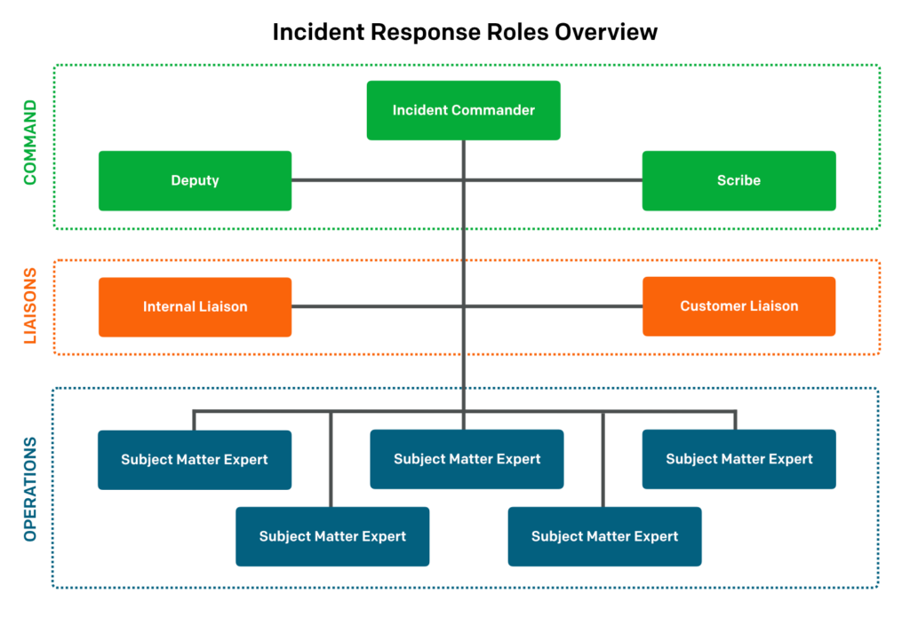 In our Incident Response Ops Guide, we describe two suggested roles to establish for your incident response process: the Customer Liaison and the Internal Liaison. These are specific, pre-assigned roles that individuals will be assigned, and may be on-call for within your organization. When a major incident occurs, your liaisons will join the response with the express purpose of making sure that information is communicated to the appropriate stakeholders and customers in a timely manner.