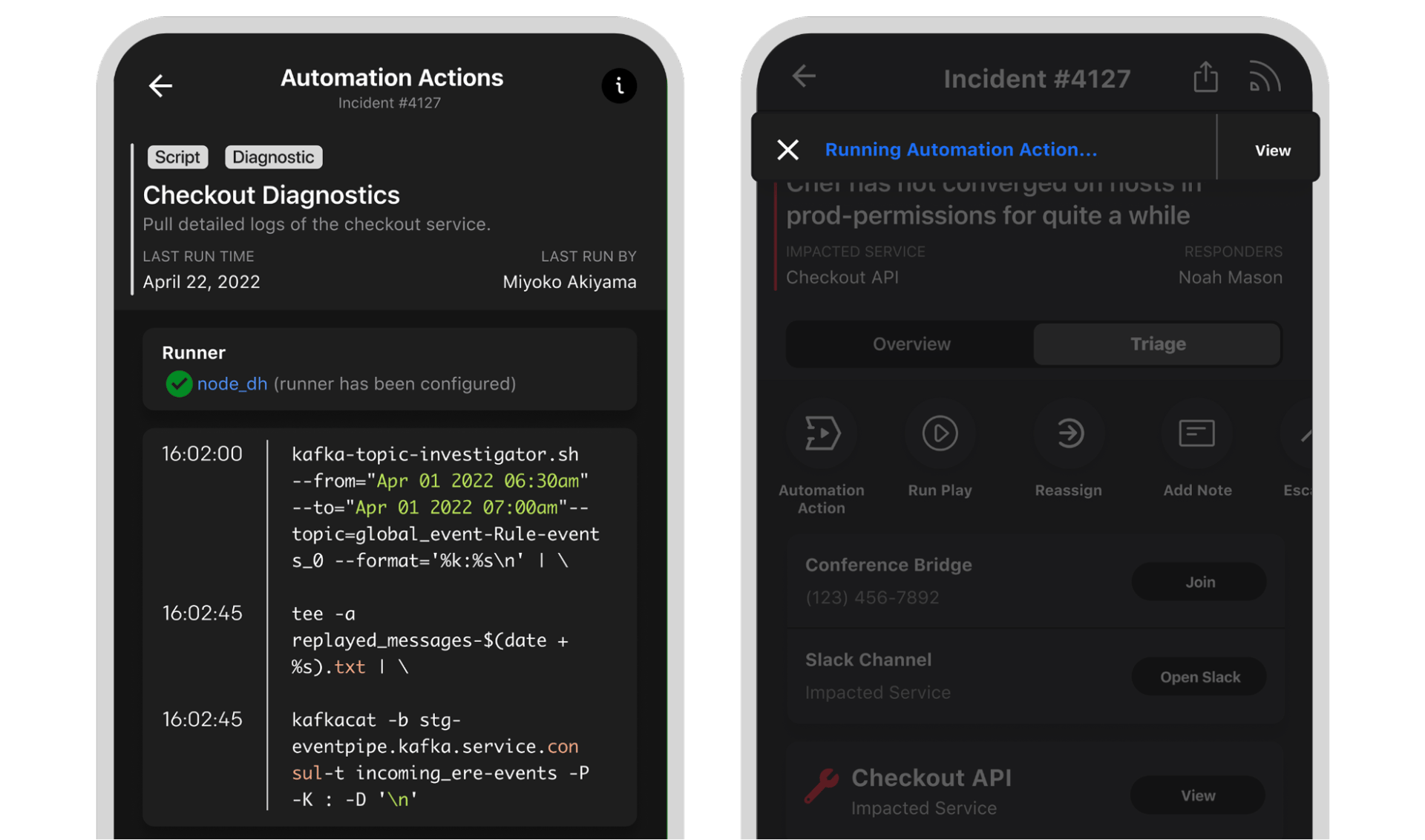 Automating repetitive manual tasks and well-understood incidents can divert unnecessary toil away from responders so that they can focus on their day jobs, and are only called for the incidents where they’re needed most. One way to do this is with automation that you can run with the tap of your finger.