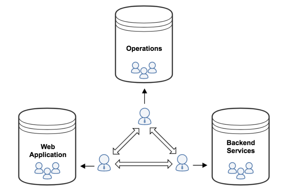 Things didn’t look much better on the ground. Product managers kicked off new projects by drafting lengthy functional design specifications, doing their best to anticipate any possible questions that might arise—a consequence of Product and Engineering not actually interacting very much during development! The spec was presented to the Web Application and Backend Services teams, who then worked on the user-facing and backend aspects independently. New infrastructure requests had to be made to the Operations team weeks in advance.