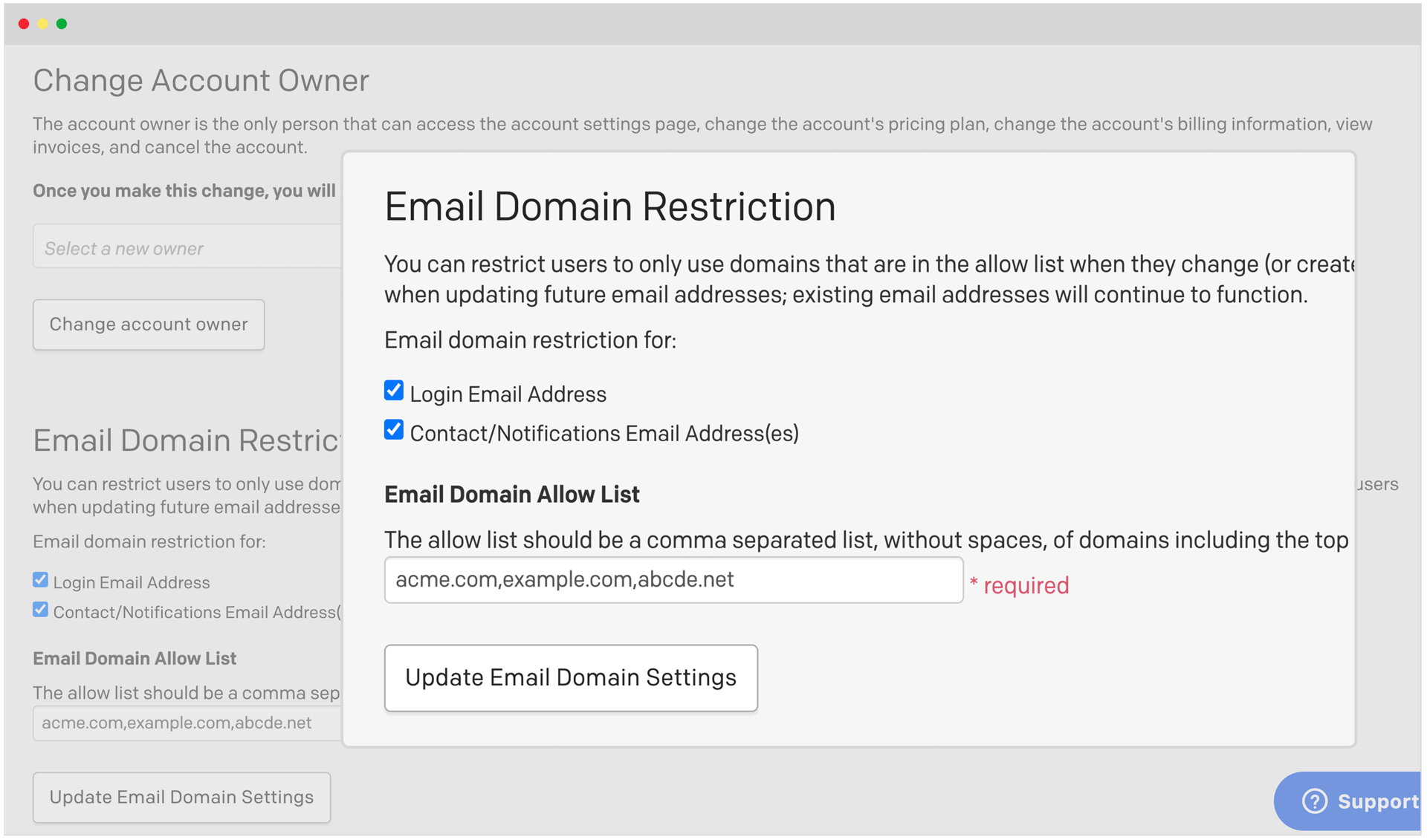 - The restriction will not be enabled for accounts with more than 10 email domains.