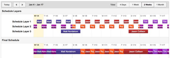 So that’s all well and good, and actually the important part. What is less important, but more exciting to me (because I’m a dork) is all the behind the scenes magic and the actual design and usability that plays out on the front stage. I’m not going to go into that so much though. I encourage you to play with the new tool and see how it feels. Do you like the feel of smooth responsive Javascript under your mouse clicks? How do you like the non-blocking page loads and the on-the-fly calendar previewing which responds to all of your actions? These are the sorts of things we are going to push for more and more as we continue to develop the PagerDuty product.