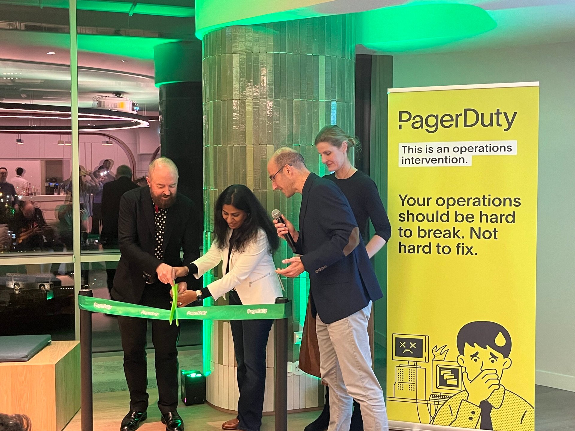 On February 27, PagerDuty officially marked this new beginning, with the grand opening of our new Lisbon office. The event brought together tech leaders, industry experts, and many passionate individuals from the local tech community. Our senior leaders, including Howard Wilson, Chief Financial Officer, João Freitas, Portugal’s General Manager and Engineering Site Lead, Katherine Post Calvert, Chief Marketing Officer, and Rukmini Reddy, SVP of Engineering, took center stage and shared inspiring insights that captured the spirit of the evening.