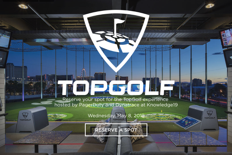 Join PagerDuty, AWS, and Dynatrace on May 8 at TopGolf, located in the MGM Grand Hotel Las Vegas. You won’t want to miss this fun-filled evening of networking, good food, and 100+ climate-controlled driving ranges. We look forward to seeing you on a night you won’t FORE-get! Space is limited, so reserve your spot now!