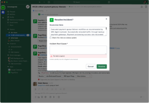 Scribe Agent (Generally Available for Slack users using Zoom, and projected to be Generally Available for Microsoft Teams users by the end of October; PagerDuty Advance customers only) will automatically transcribe Zoom calls to the incident chat in Slack and Microsoft Teams in real time. It combines the transcript with chat conversation to draft structured summaries and status updates to quickly bring teams up to speed, ensuring no critical detail is lost during response or in post-incident review. This comprehensive multi-platform support ensures your teams can capture critical information regardless of which communication tools they use, going beyond the limited platform coverage typically available in the market. Learn more.