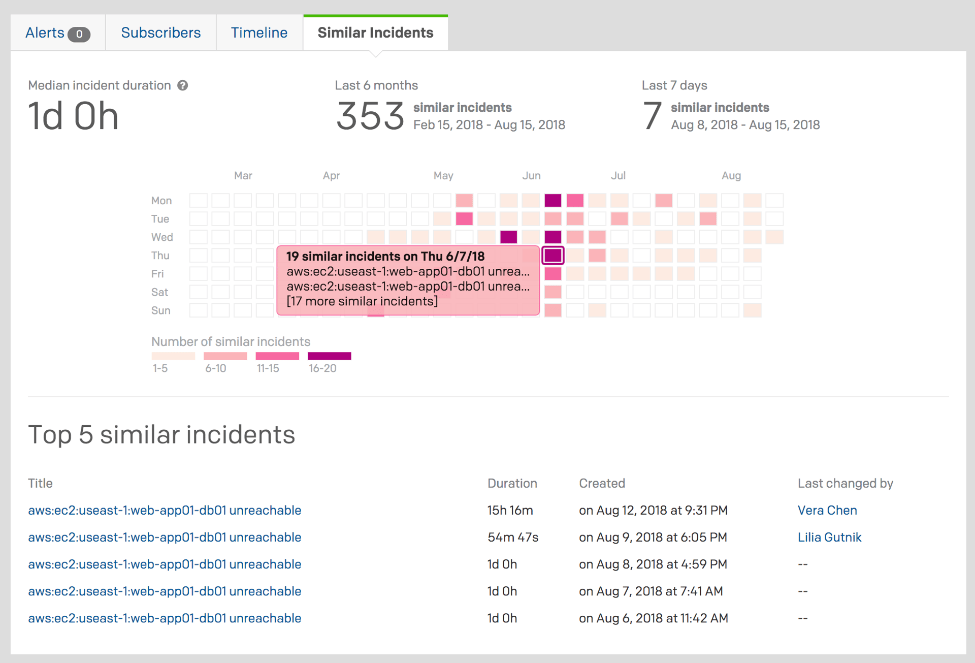 Similar Incidents help you view past related issues automatically embedded within incidents to improve triage. You can see which experts were involved in handling previous similar issues and how often the issues have occurred in the past, as well as gain contextual insights from past incidents that are enriched with remediation instructions that can help you resolve issues faster.
