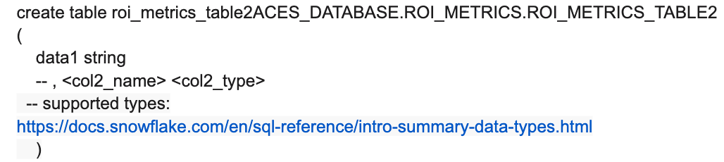 Output when posted in Snowflake (for each execution of the job a row will be added with the metric):