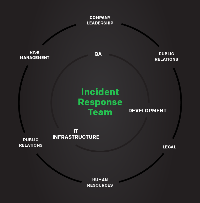 When putting together an incident response team, it should obviously include representatives from IT Infrastructure, Development, and Quality Assurance. But there are a number of other functions which should be represented as well: