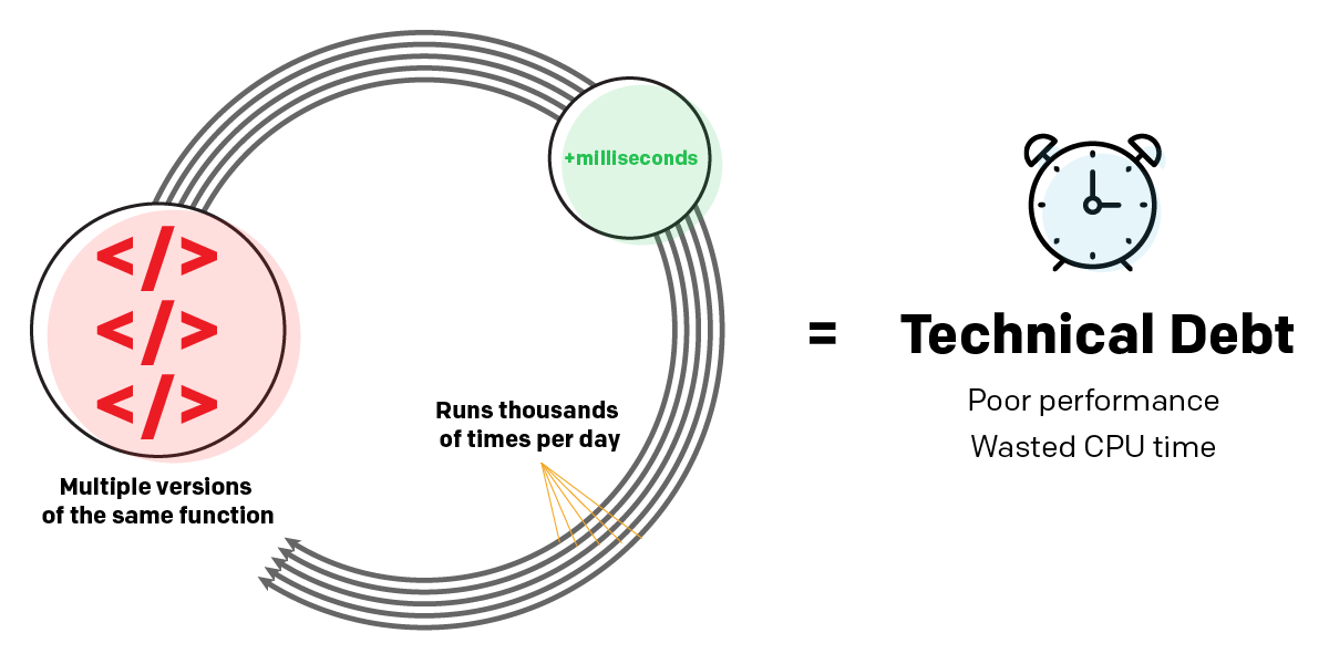 Ein Programm, dessen Code beispielsweise mehrere Versionen derselben Funktionen enthält, anstatt modular aufgebaut zu sein, kann einige Millisekunden länger laufen als ein besser geschriebenes Programm. Bei einmaliger Ausführung ist das nicht weiter tragisch. Bei einer serverseitigen Webanwendung, die jedoch tausendfach täglich ausgeführt wird, summieren sich die Nachteile schnell in Form von Leistungseinbußen und verschwendeter CPU-Zeit.