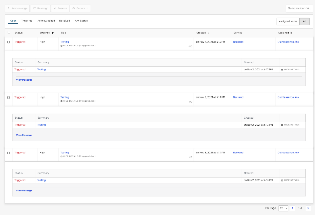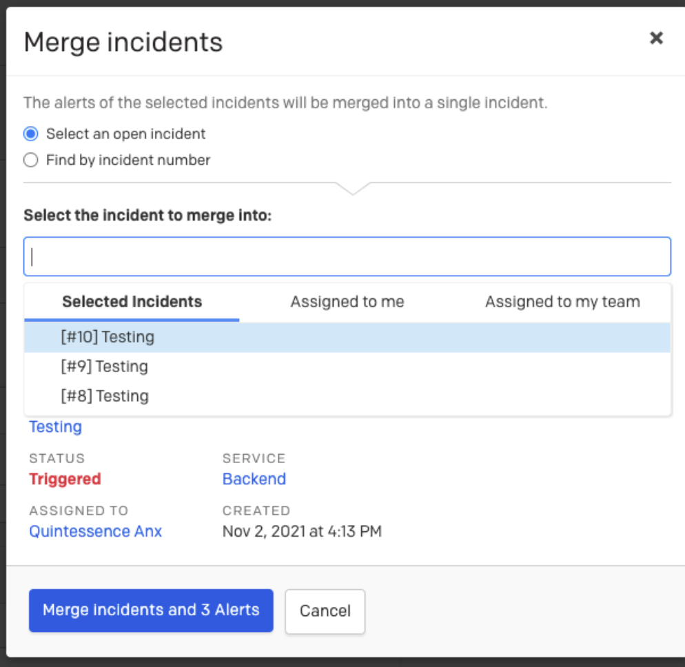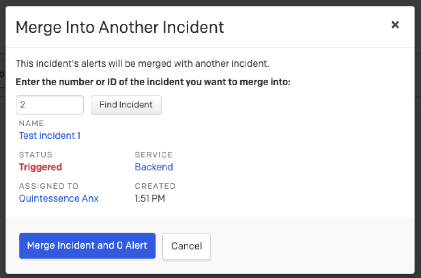 - Seien Sie beim Zusammenführen von Vorfällen vorsichtig, da Zusammenführungen nicht direkt aufgehoben werden können. Sie müssen einen neuen Vorfall erstellen und die Benachrichtigungen gegebenenfalls dorthin verschieben.