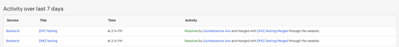 Zur Verdeutlichung habe ich den Titel des Vorfalls geändert, um zu zeigen, dass die Vorfälle zusammengeführt wurden. Das Ergebnis sieht wie folgt aus: