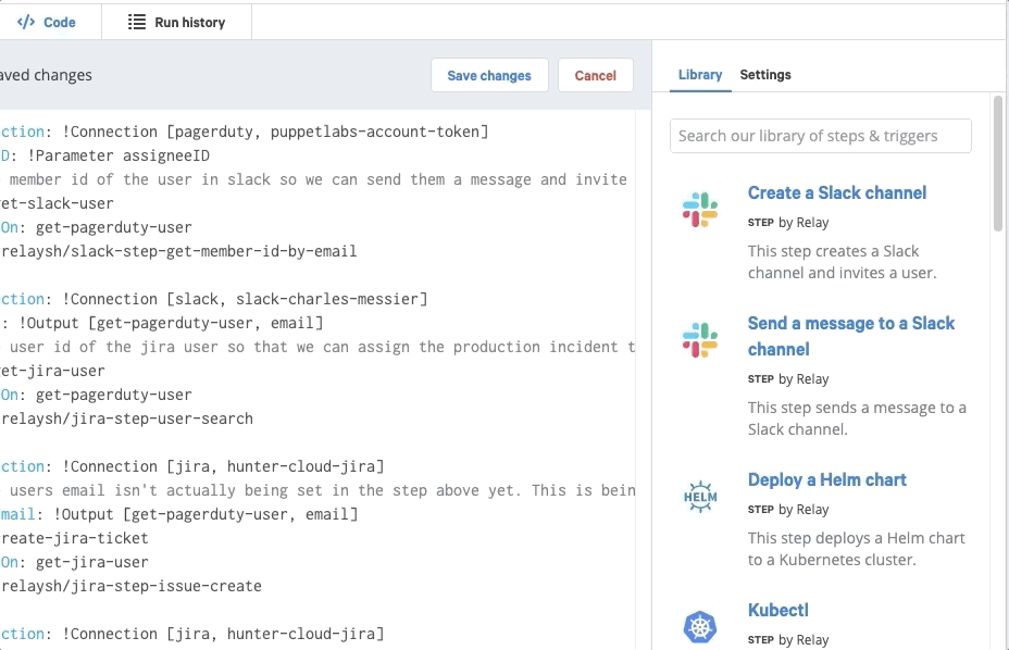 Nutzen Sie Relay mit PagerDuty , um Ihre Reaktionszeit bei Störungen zu verkürzen und die Transparenz zu verbessern. Eine kurze mittlere Lösungszeit (MTTR) ist entscheidend für erfolgreiches DevOps-Management. Durch ereignisgesteuerte Automatisierung verkürzt sich Ihre Reaktionszeit erheblich. Relay erleichtert dies durch Workflows, die häufig auftretende und bekannte Probleme beheben, die Teams bereits identifiziert haben. Weitere Informationen zu Relay finden Sie auf unserer Website unter [Link einfügen]. relay.sh und melde dich für unsere kostenlose Betaversion an!