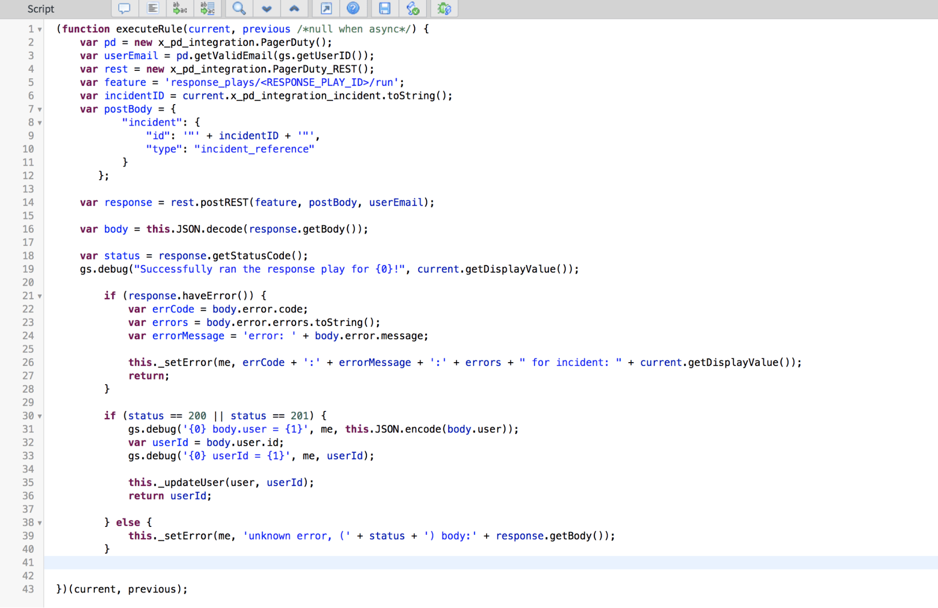 - Add a Business Rule in ServiceNow to trigger a script when an incident is changed to a P1.