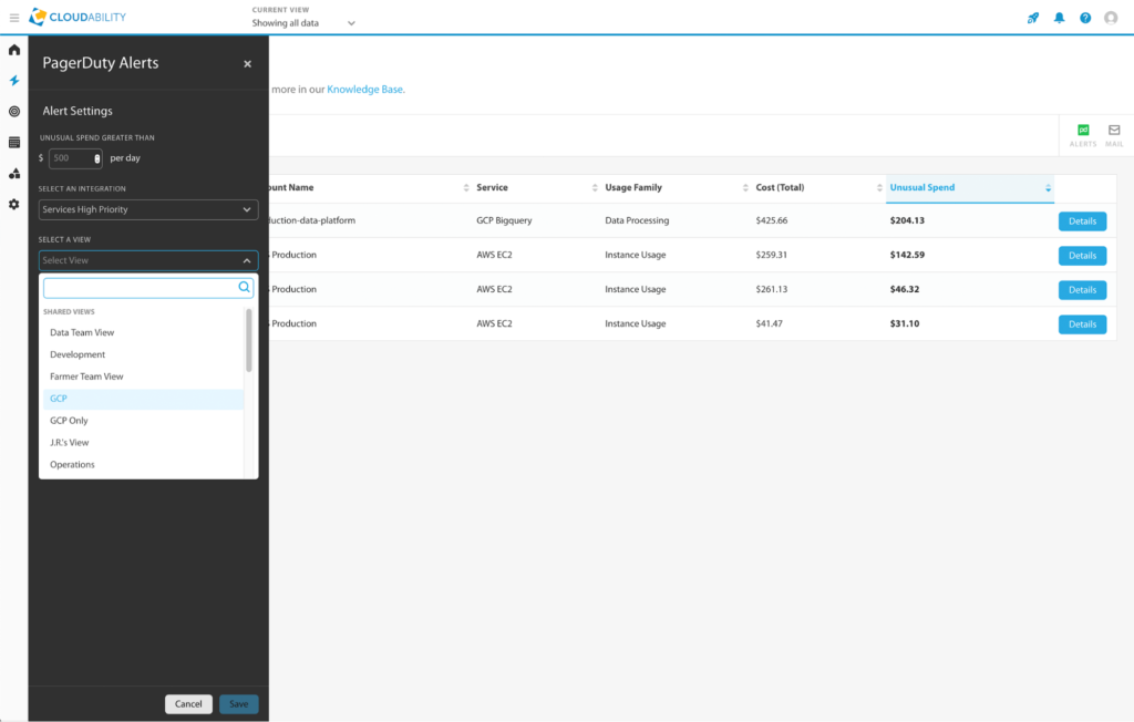 - Senden Sie angereicherte Cloud-Abrechnungsereignisdaten in Echtzeit von Cloudability an PagerDuty