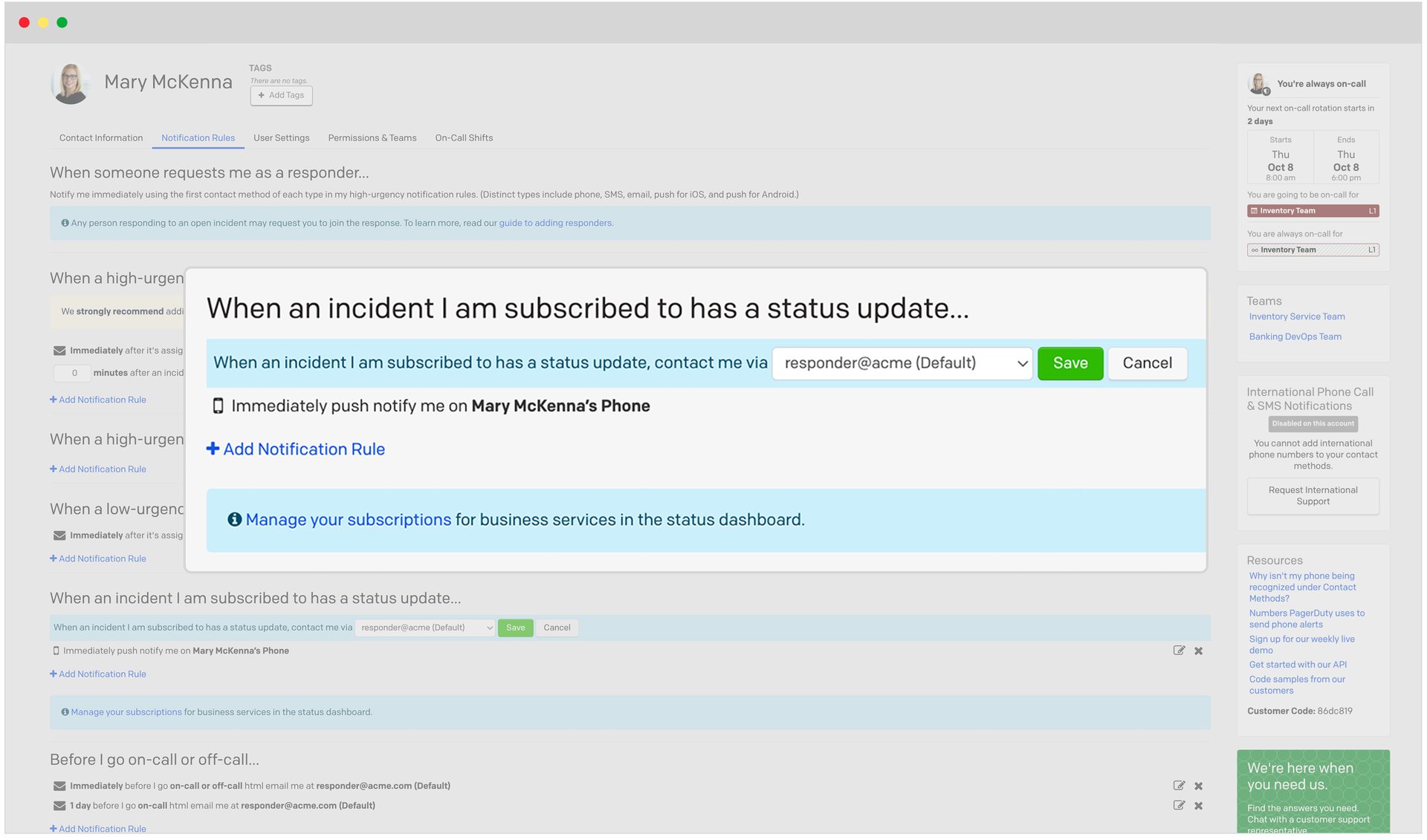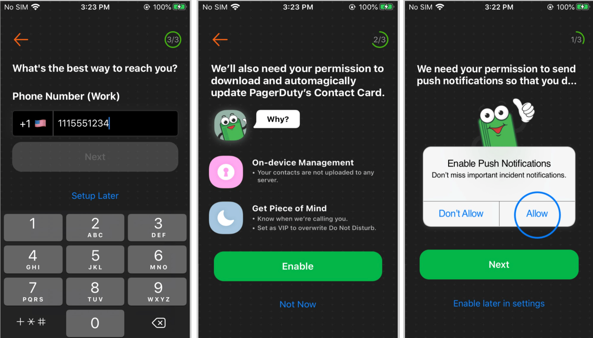 • Mobile User Setup. Responders can now follow guided setup best practices to ensure they receive important pages day or night, whether it’s push notifications, phone calls, or SMS.