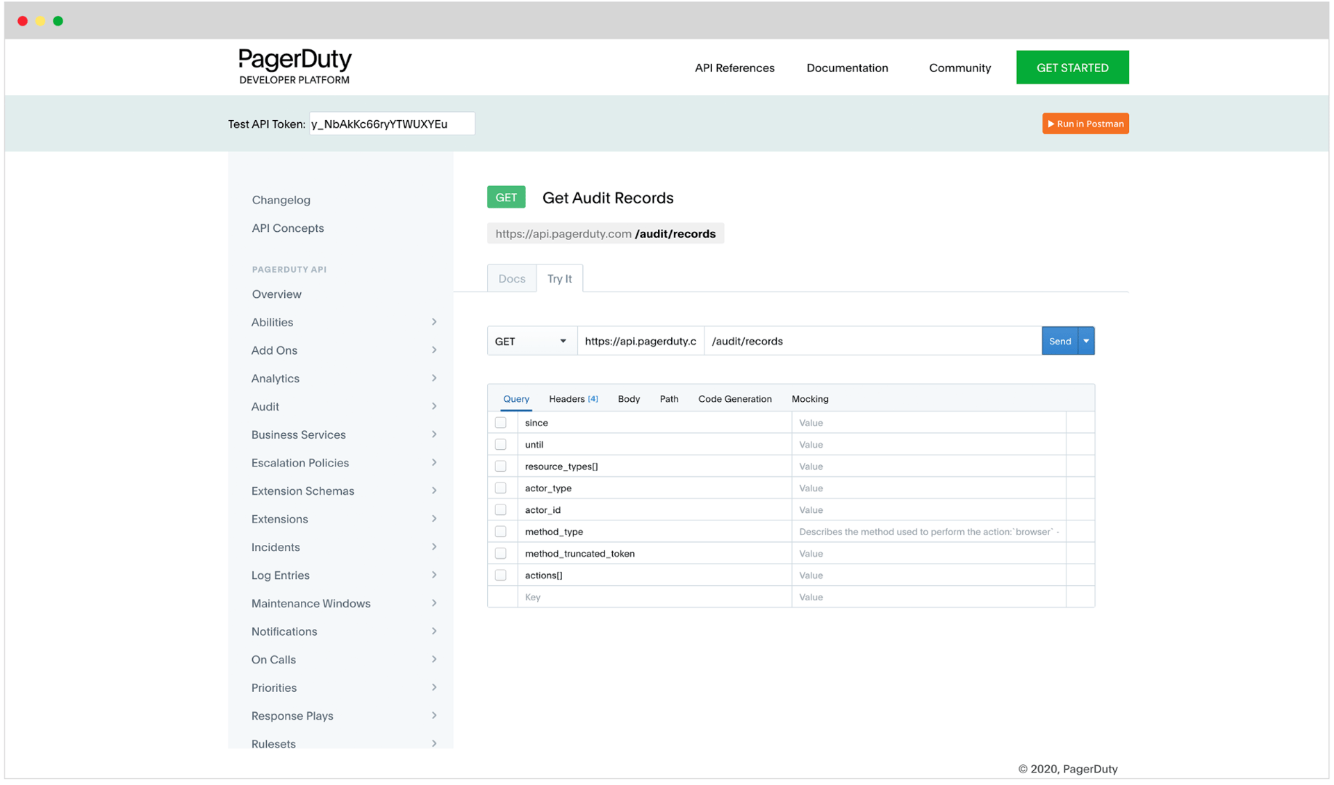 Audit Trail Reporting. New audit trail reporting delivers operational visibility and compliance to aid in understanding what changes were made that led to a missed incident. Previously, to investigate configuration problems, customers needed to contact their PD account team or Customer Support. Not anymore! Self-service PagerDuty audit functionality empowers you to examine service history and understand what’s going on at a larger scale. Administrators can access audit records for the previous year, on demand and at any frequency, to comply with organization policy.