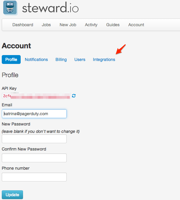 You can easily integrate your existing PagerDuty services with periodic jobs and tasks on Steward by providing Steward with a service API key. You can even customize your alert settings.