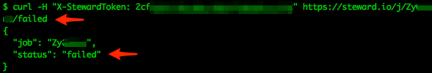 Steward's guides are located here. Notify Steward that your job has started. For reference, my example below uses cURL and a job I named "PagerDuty Test."*Be sure that you are using the correct job code, which can be found by clicking on the name of your job in Steward: