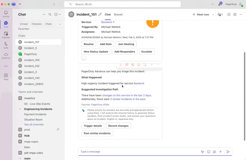 Access PagerDuty's incident management directly in Microsoft Teams. Create dedicated incident chats, link existing channels, take key workflow actions, and view automated transcriptions without leaving your workspace.