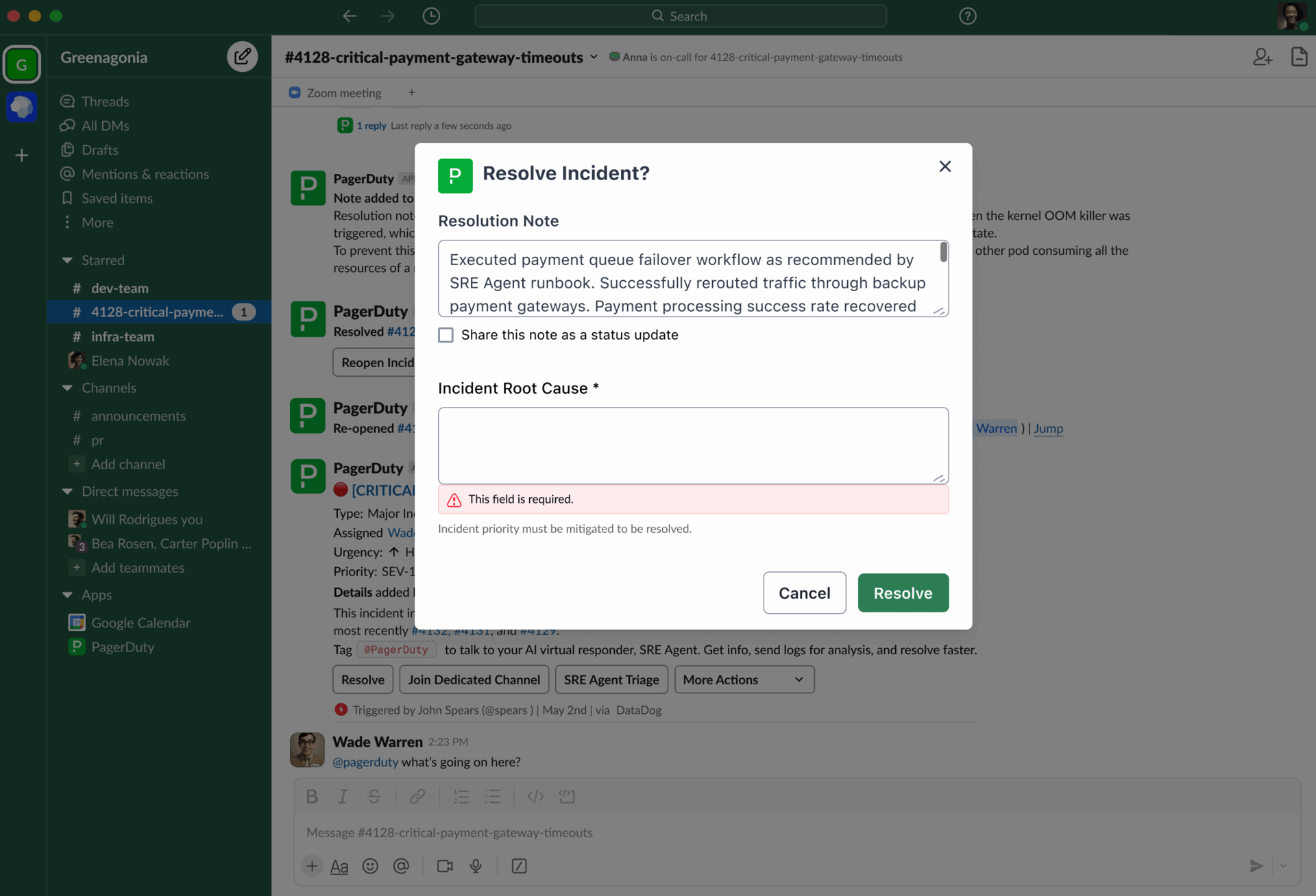Eliminate workflow friction with flexible incident management. Dynamically add or remove team members (forthcoming), reopen resolved incidents (generally available), edit notes (forthcoming), and customize resolution forms that enforce data collection (generally available).