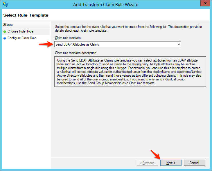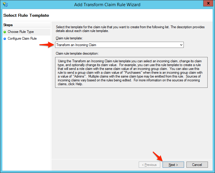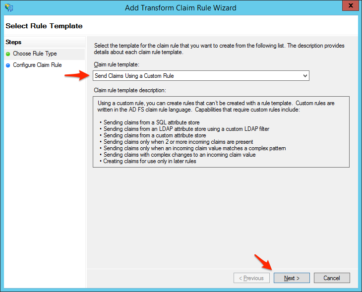 - Click Add Rule... on the Issuance Transform Rules tab again.