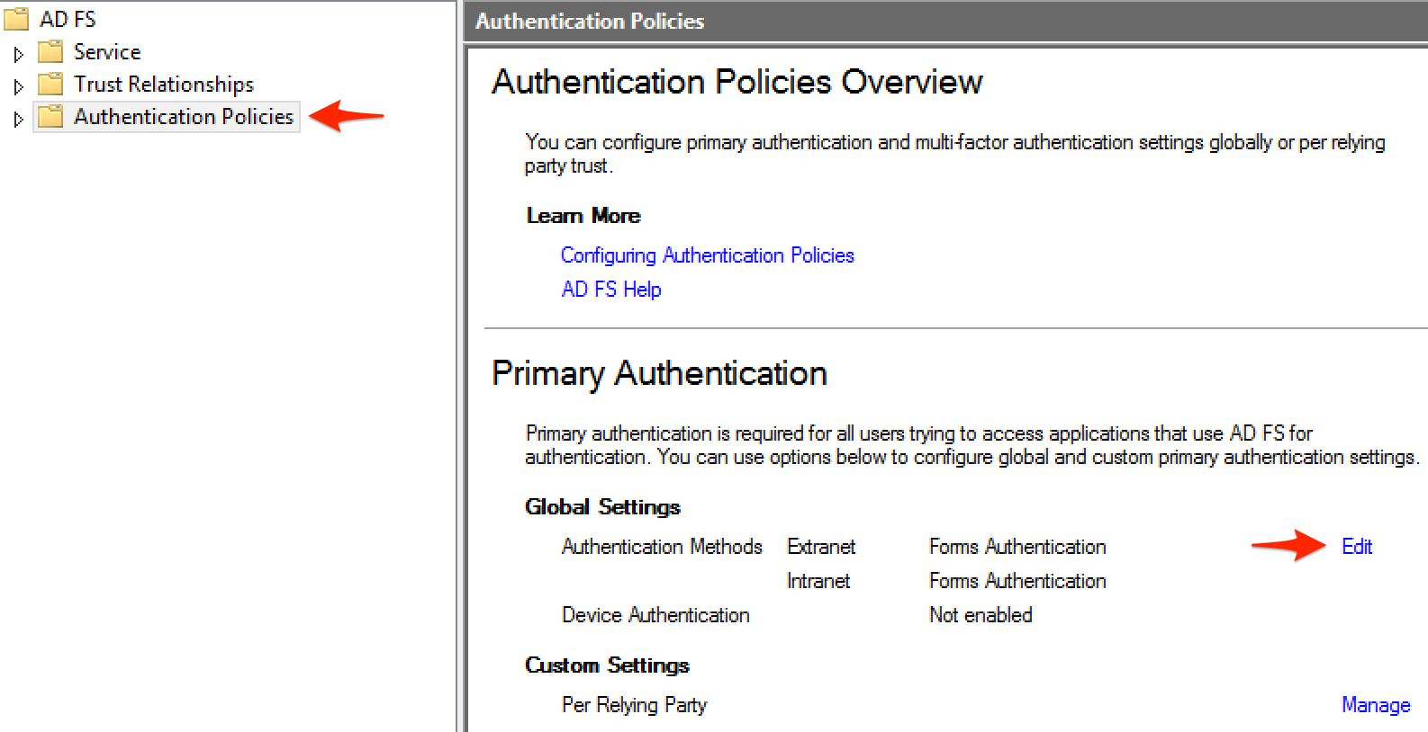 - Go to Authentication Policies and click Edit under Primary Authentication Global Settings.