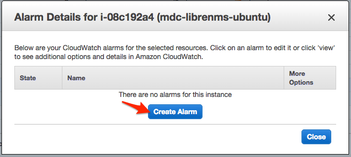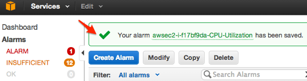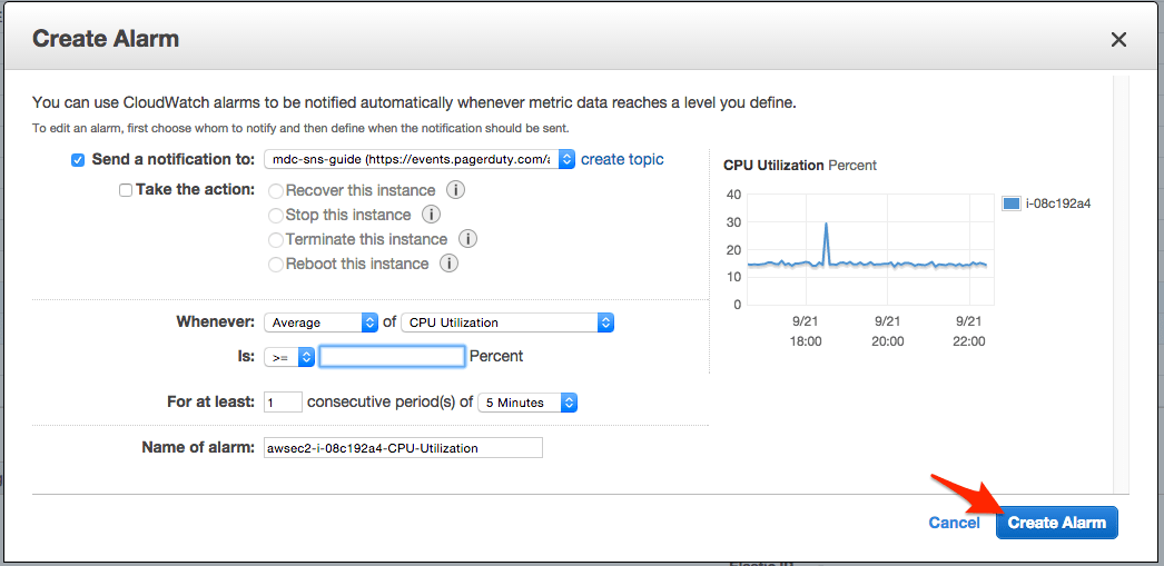 - Click Create Alarm.