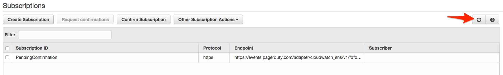 - Your subscription should be automatically confirmed. Click the refresh icon to make sure the Subscription ID is not PendingConfirmation.