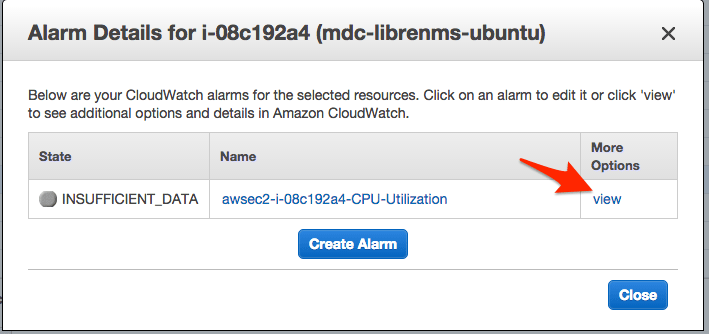 - You will see the alarm that you created earlier. Click view under More Options.