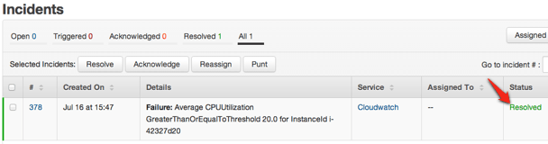 - Once that alarm is back in an OK state, the incident will automatically resolve within PagerDuty.
