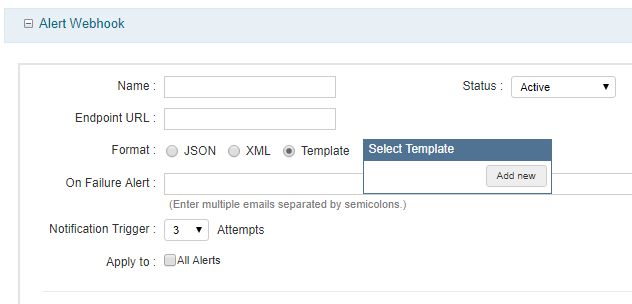 2. Set the Alert Webhook status to Enabled, the Status to Active, and Endpoint URL to:
