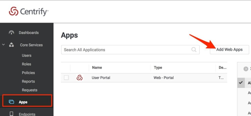 - Select Apps and click Add Web Apps.