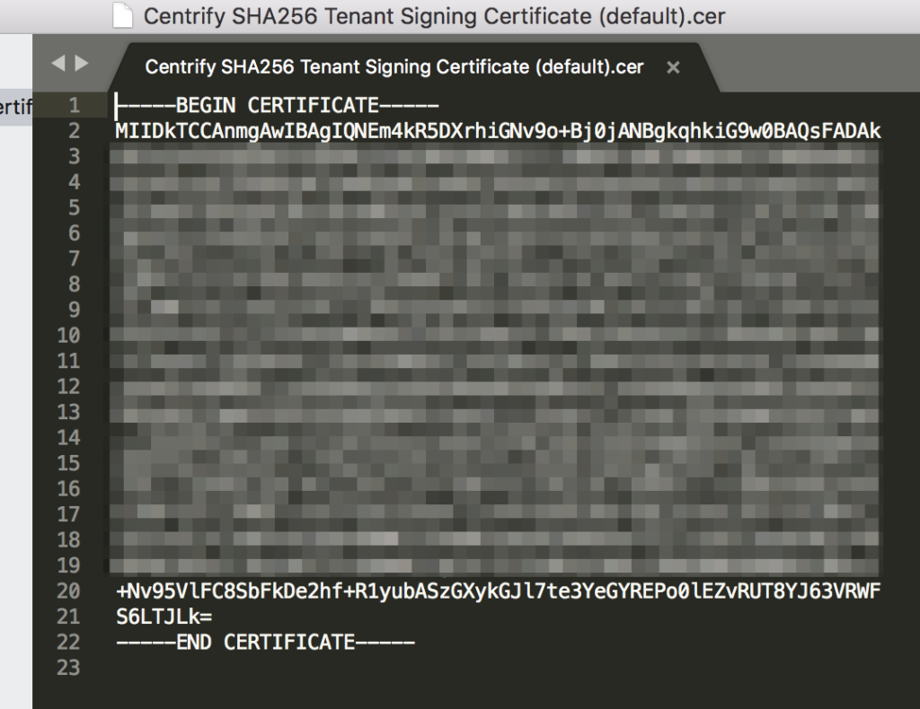 - Open the certificate you downloaded earlier in a text editor; it should look similar to the screenshot below. Copy the full contents of this certificate and paste it into the X.509 Certificate field in PagerDuty.