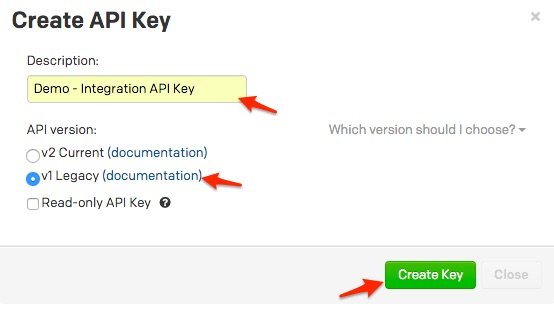 This integration requires use of our v1 REST API which is currently in a decommissioning period, please contact support to gain access to a v1 REST API key to configure this integration.