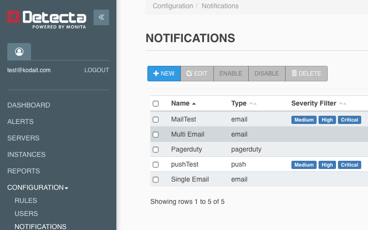 - Log in to mydetecta.com and navigate to Notification Configuration. Click New.