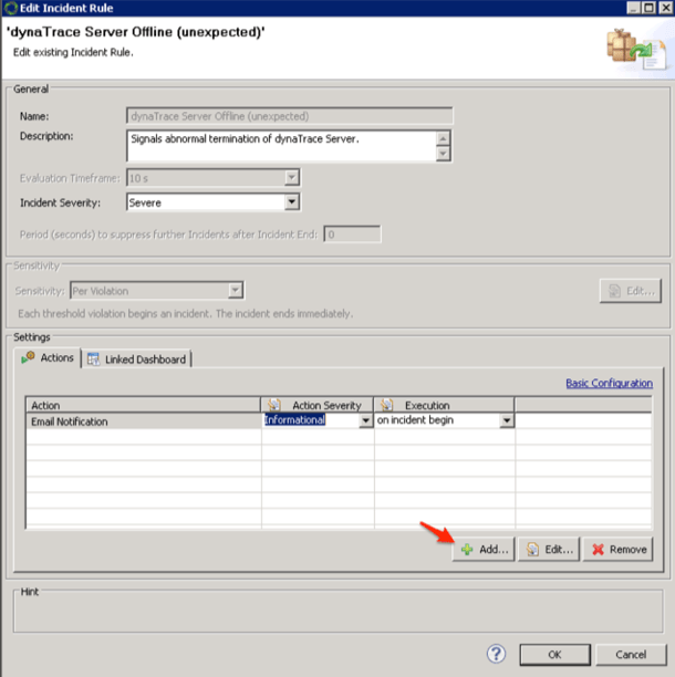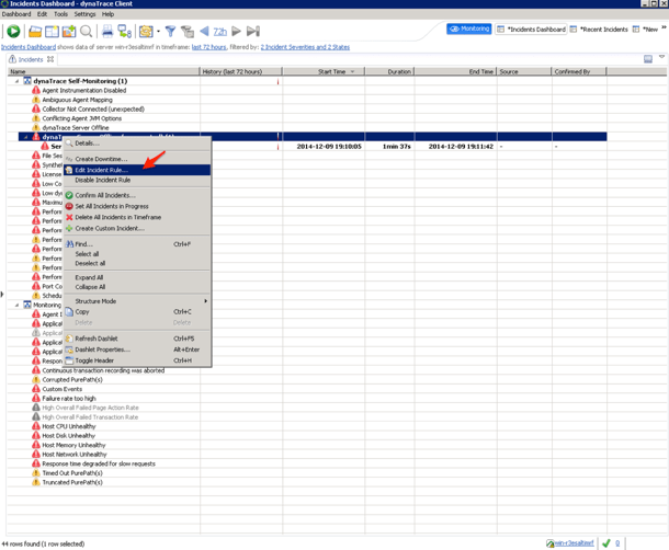 - Select the incident you want to set up PagerDuty alerting against and open the Edit Incident Rule dialog.