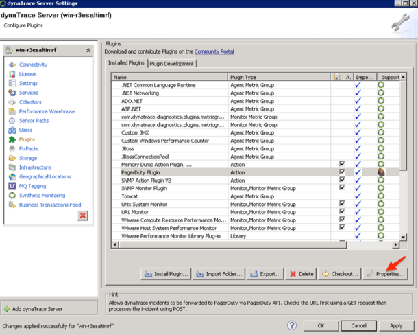 - Select the new PagerDuty Plugin from the list of available plugins and click Properties.