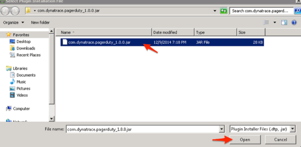 - Locate the JAR file that you downloaded to your desktop and click Open.