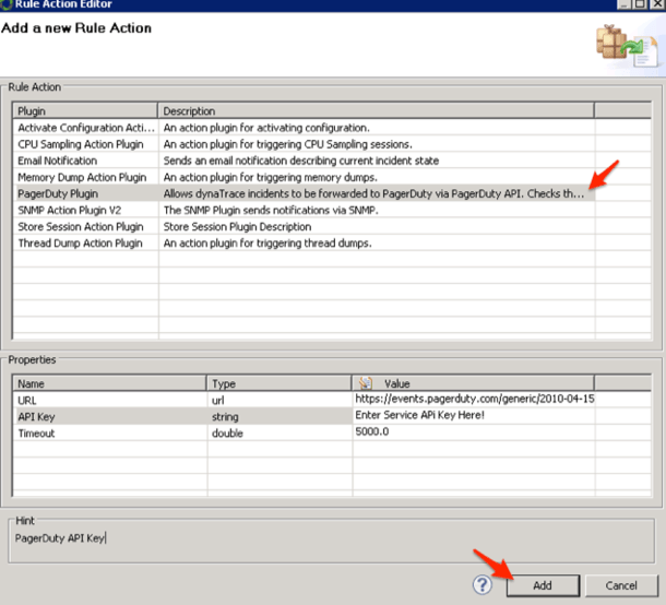 - Select the PagerDuty Plugin that was installed earlier and click Add.