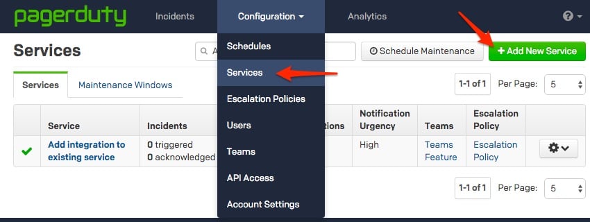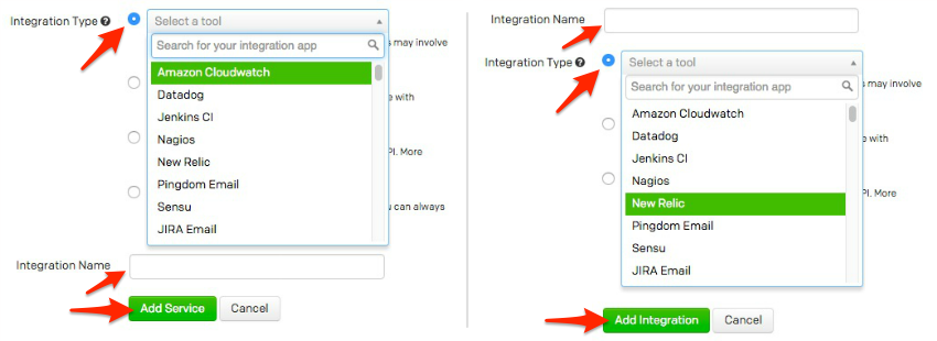 - If you are adding your integration to an existing service, click the name of the service you want to add the integration to. Then click the Integrations tab and click the New Integration button.