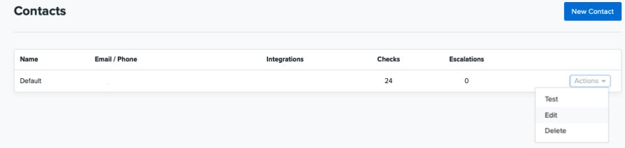Next, navigate to Notifications → Contacts and select Add New. Find the contact you want to assign your new notification profile to, click the the Actions dropdown to the right of their information and select Edit.