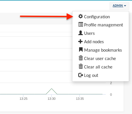 - Navigate to the ADMIN dropdown in the top-right corner of the WombatOAM Dashboard and select Configuration.