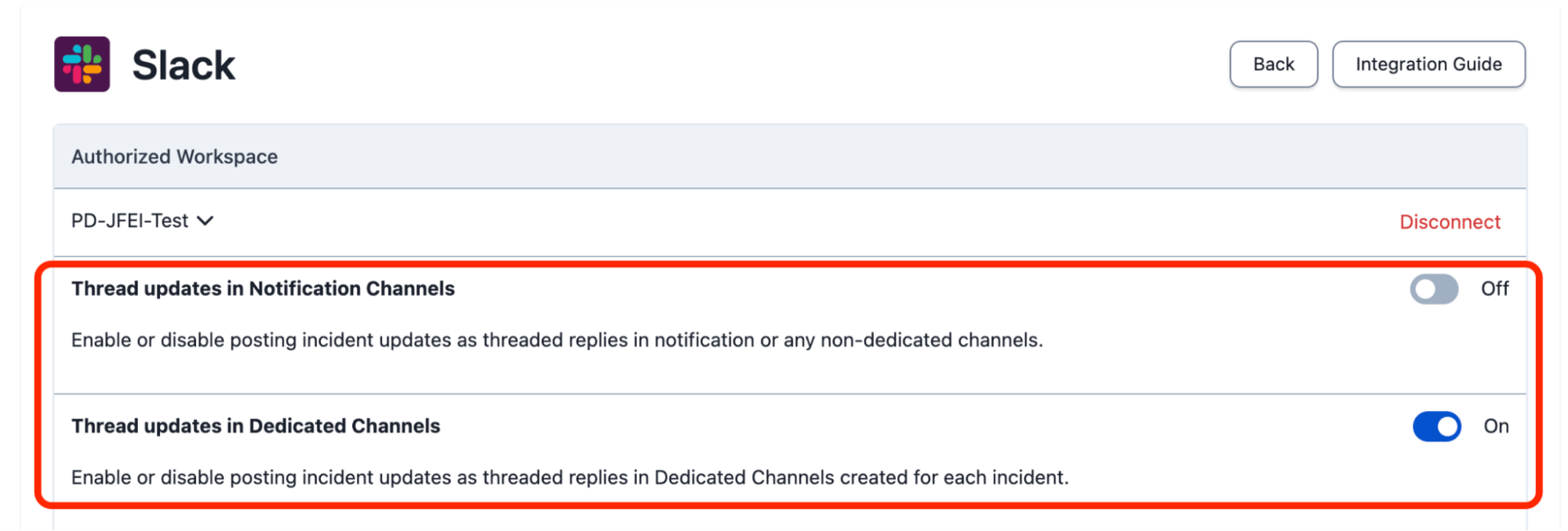Subsequent updates to incidents can now be threaded to reduce noise and improve clarity in both notification and dedicated incident channels.