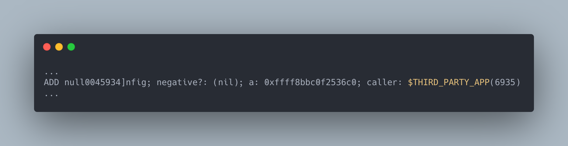 This is a negative dentry, which means the file does not exist on the filesystem, and it is also suspicious that the filename starts with null followed by a series of random letters and numbers. At this point we suspected that the app had a bug that was causing it to look up effectively random paths on /. This was causing the number of negative dentry objects being cached by the kernel to balloon over time eventually causing inotify_add_watch calls to take orders of magnitude longer while holding a lock that a wide variety of filesystem related calls require in order to function. Since we were running several threads that were making these sorts of filesystem related calls, they all attempted to wait for this lock while also disabling preemption on the CPU core on which they were being run, locking up the machine until inotify_add_watch had finished running.