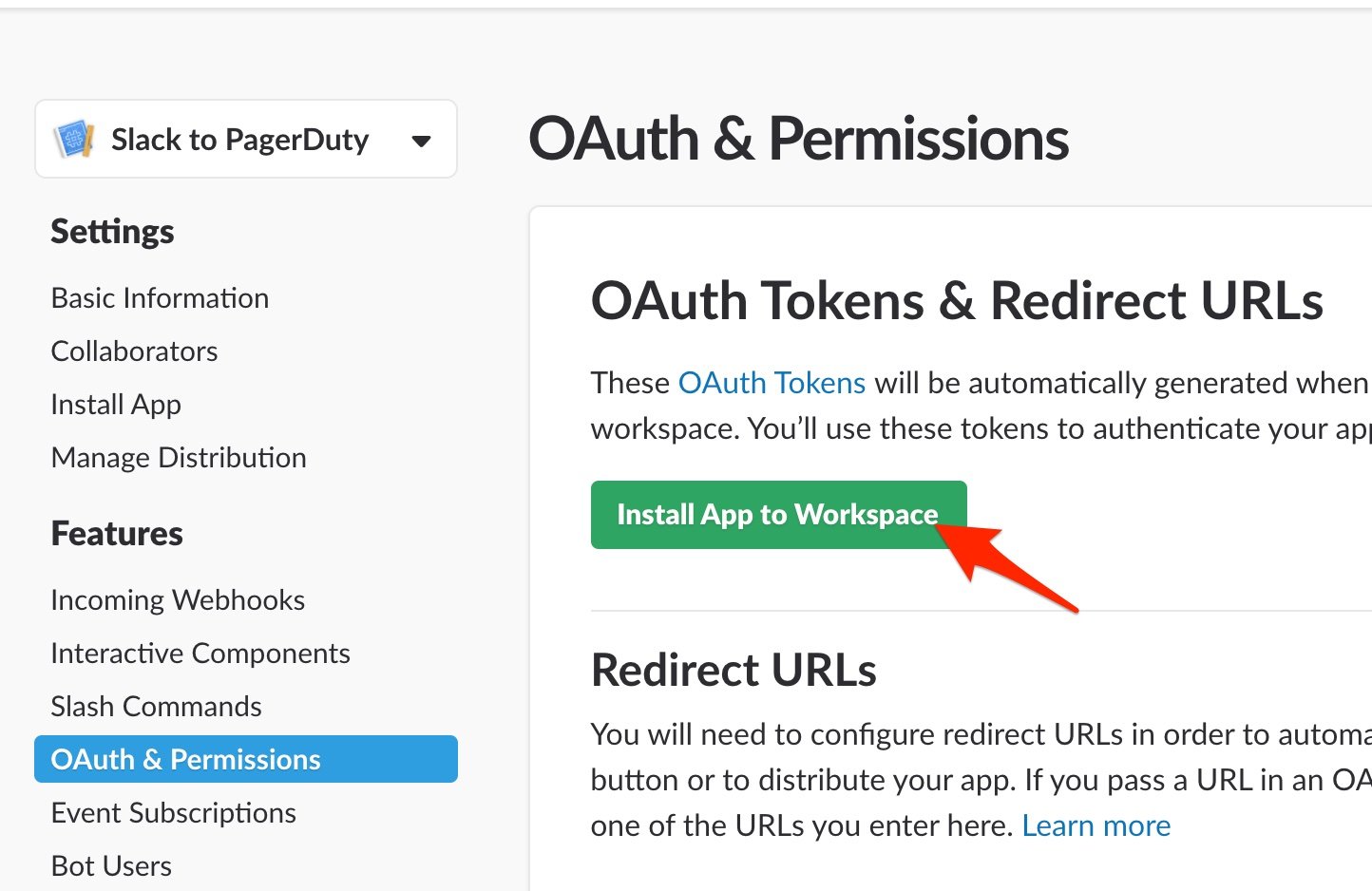 - Cliquez OAuth et autorisations à gauche puis cliquez Installer l'application sur l'espace de travail.